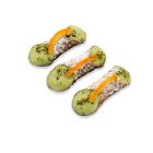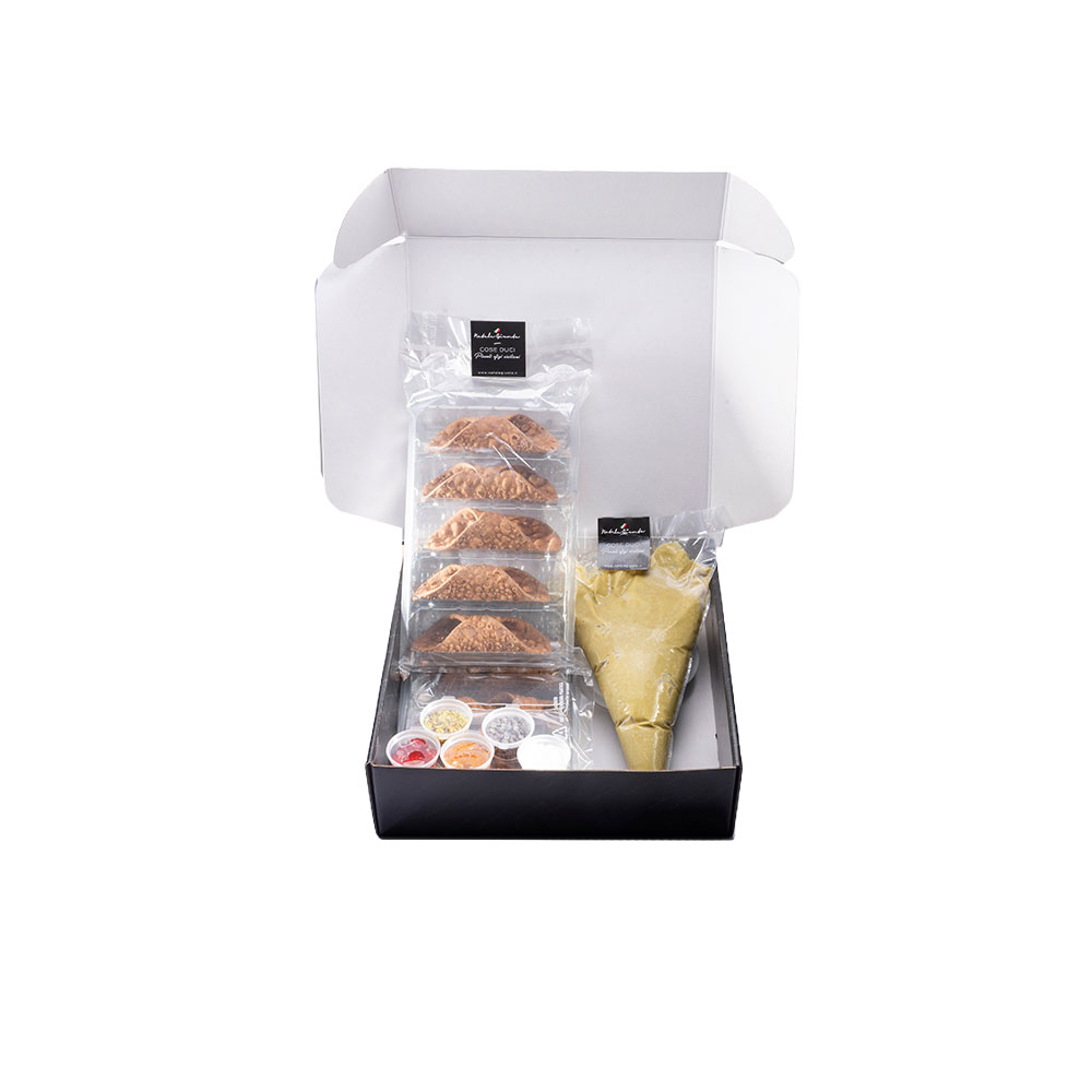 Il prelibato simbolo della tradizione dolciaria siciliana: un involucro di croccante cialda fatta a mano che racchiude un sorprendente cuore morbido di crema di ricotta al Pistacchio guarnito con buccia d’arancia candita e granelli di pistacchio. Semplice, buono e genuino come i sapori di un tempo. Cannoli con crema di ricotta al Pistacchio Gluten Free venduti in box da 10 pezzi.