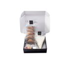 Il prelibato simbolo della tradizione dolciaria siciliana: un involucro di croccante cialda fatta a mano che racchiude un sorprendente cuore morbido di crema di ricotta guarnito con buccia d’arancia candita e granella di pistacchio. Semplice, buono e genuino come i sapori di un tempo. box da 10 pezzi.