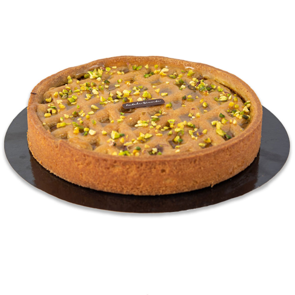 La crostata con crema al Pistacchio è un dolce gustoso, semplice e amato da tutti. Il gusto delicato e l’aspetto elegante è perfetto per tutte le occasioni e per i palati più esigenti. La composizione morbida e friabile della pasta frolla tipica di questo dolce avvolge il verde della crema al pistacchio.