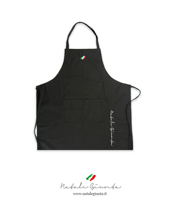 Il regalo perfetto per te che cucini con infinita passione, o magari per il tuo amico che ama cucinare e lo fa ogni volta per tutta la comitiva, per la mamma casalinga che passa le giornate ai fornelli per accontentare tutti, per la sorella che ci prova ma cucinare non fa proprio per lei, per il papà mago del barbecue e sempre pronto per una grigliata. Un grembiule nero firmato Natale Giunta e ricamato a mano, elegante e pratico, racchiuso in un’elegante scatola regalo.