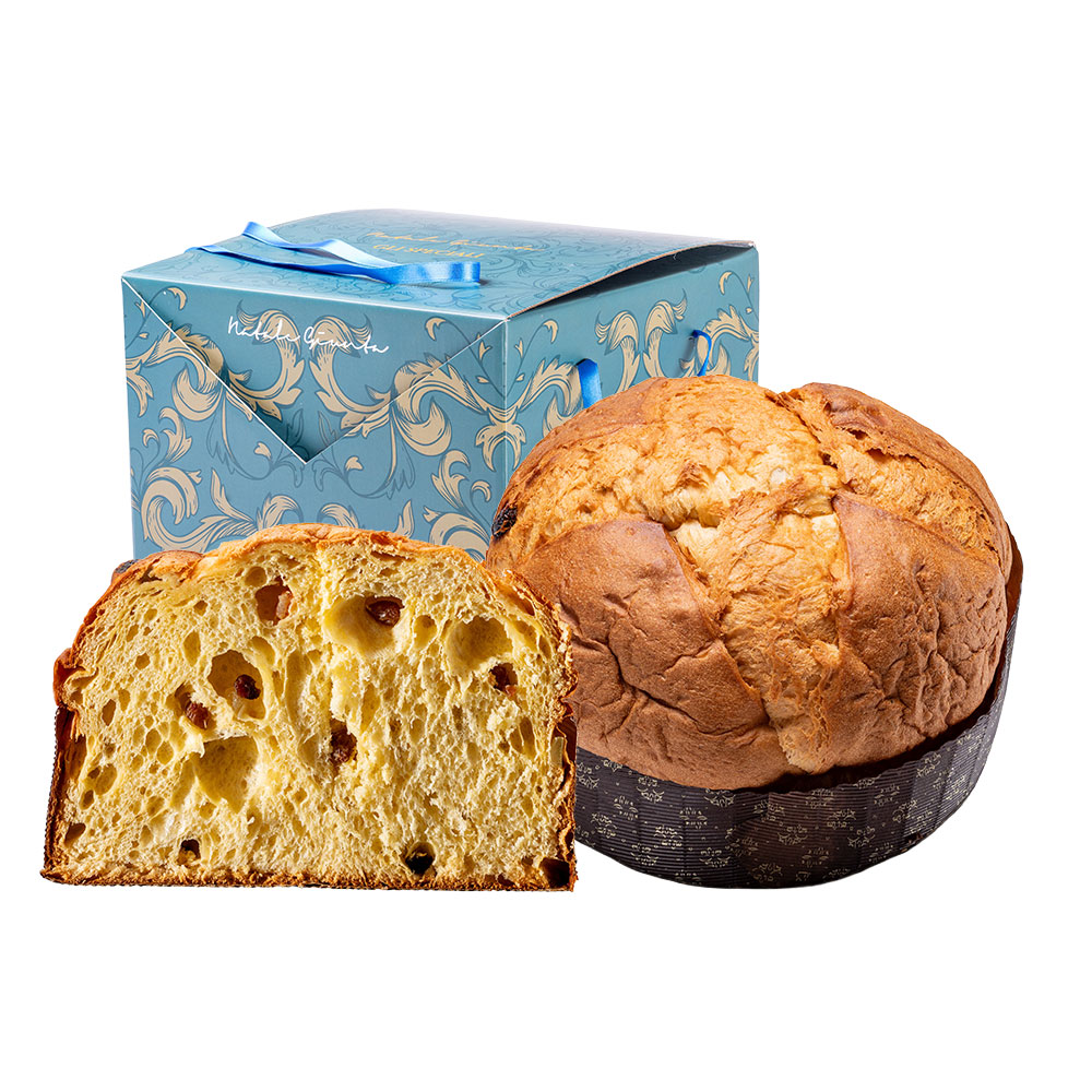 Il nostro panettone tradizionale è un omaggio alla pasticceria italiana. Realizzato secondo un’antica ricetta, questo dolce racchiude tutto il sapore e l’autenticità del Natale. La lenta lievitazione naturale con lievito madre, le ore di lavorazione a mano e l’assenza di coloranti e conservanti lo rendono un prodotto unico e genuino. Un’esplosione di gusto ad ogni morso, grazie ai delicati acini d’uva sultanina e ai canditi.