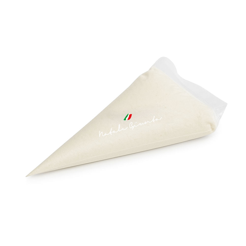 Una sac-à-poche piena di squisita ricotta di pecora freschissima, pronta da utilizzare per decorare e farcire i tuoi dolci.