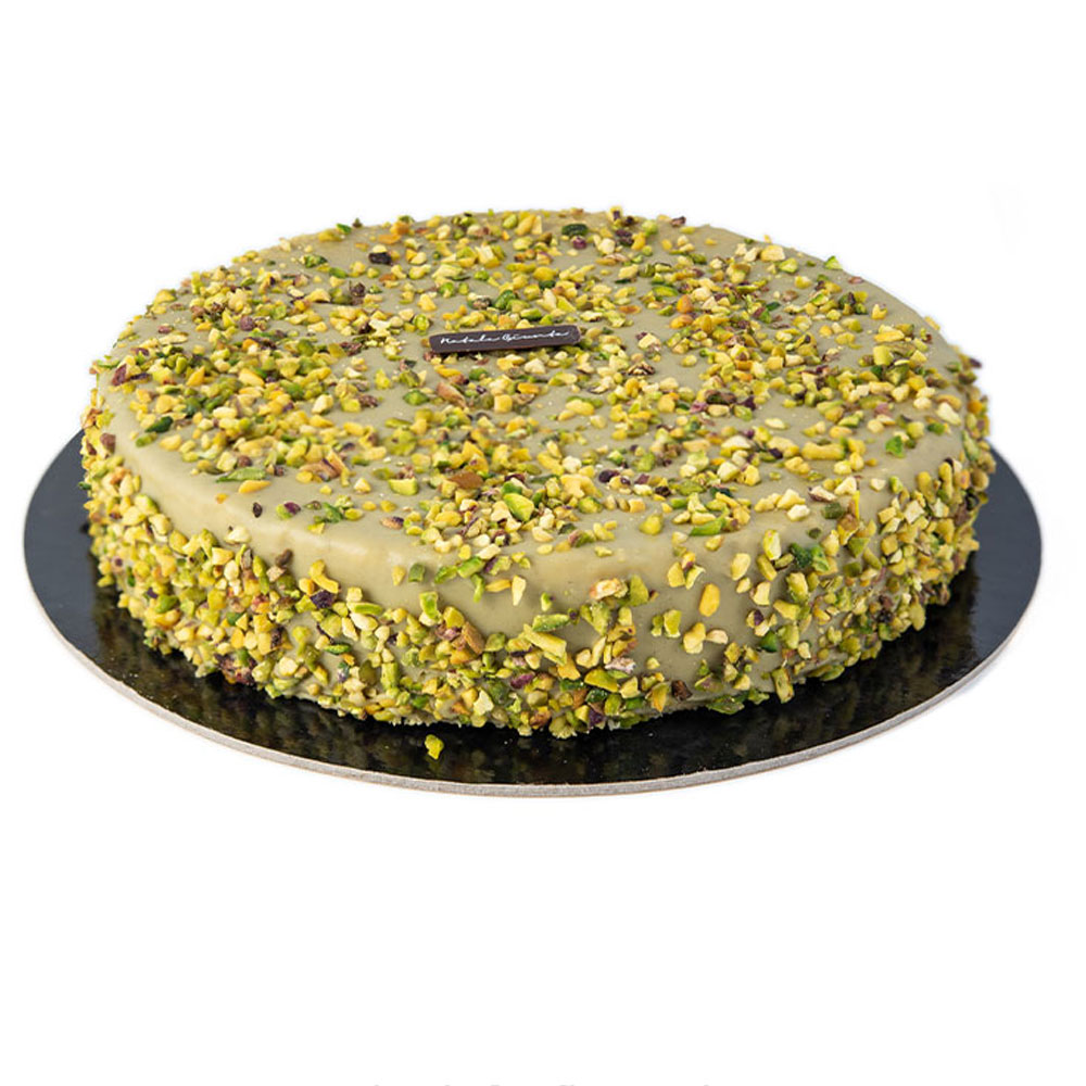 Ingredienti: Biscotto morbido alla vaniglia, cremino al Pistacchio, ganache al pistacchio e pistacchio croccante caramellato.